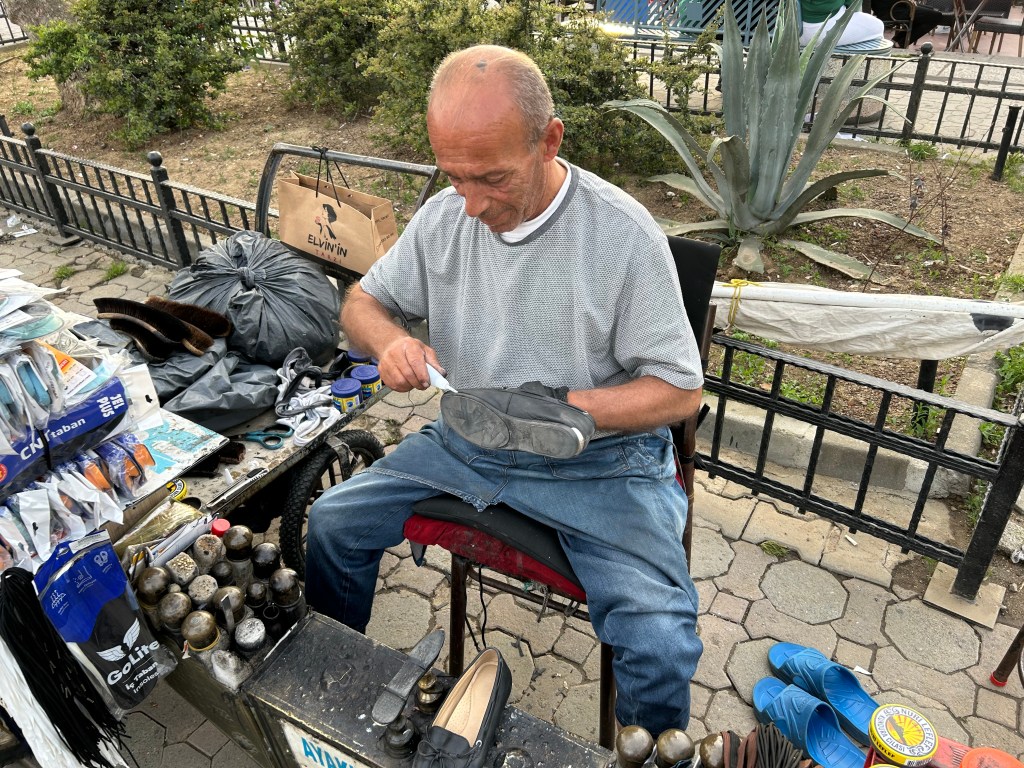 Getting a shoe repair and shine along the Kadiköy waterfront