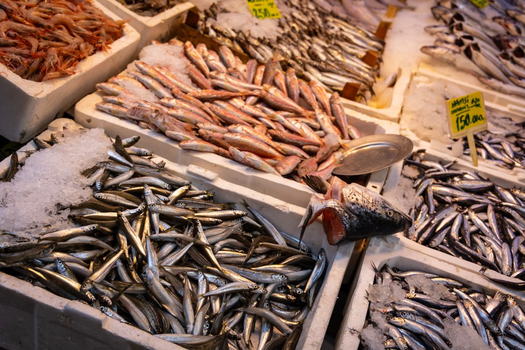 Fresh fish and vegetables at the market